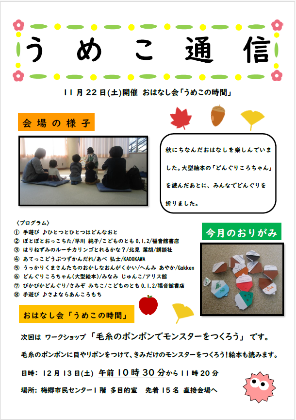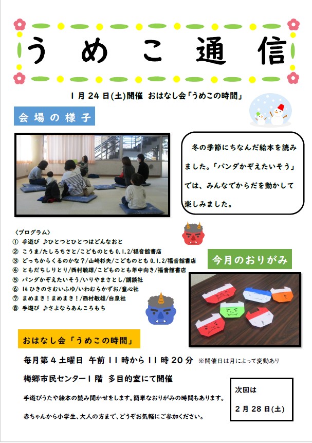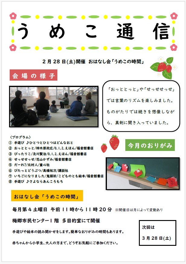 うめこ通信(梅郷図書館おはなし会「うめこの時間」プログラム)